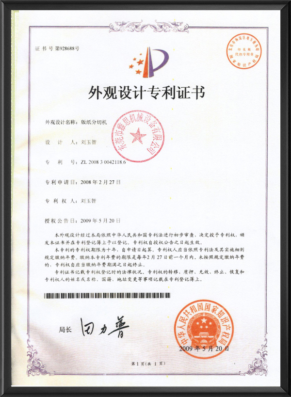Appearance Patent for Plate Slitter