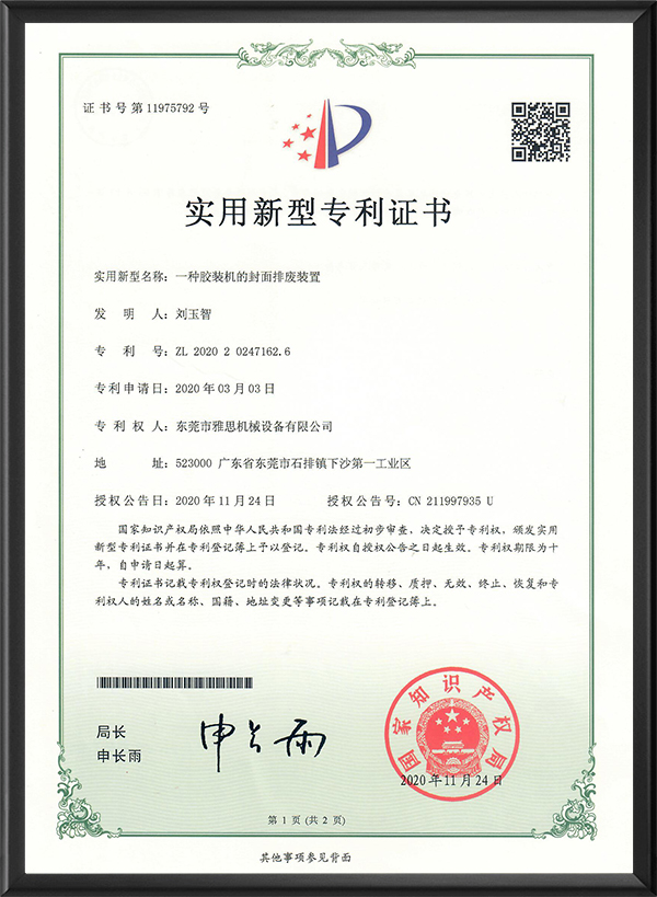 Patent for the exhaustion of adhesive binding machines