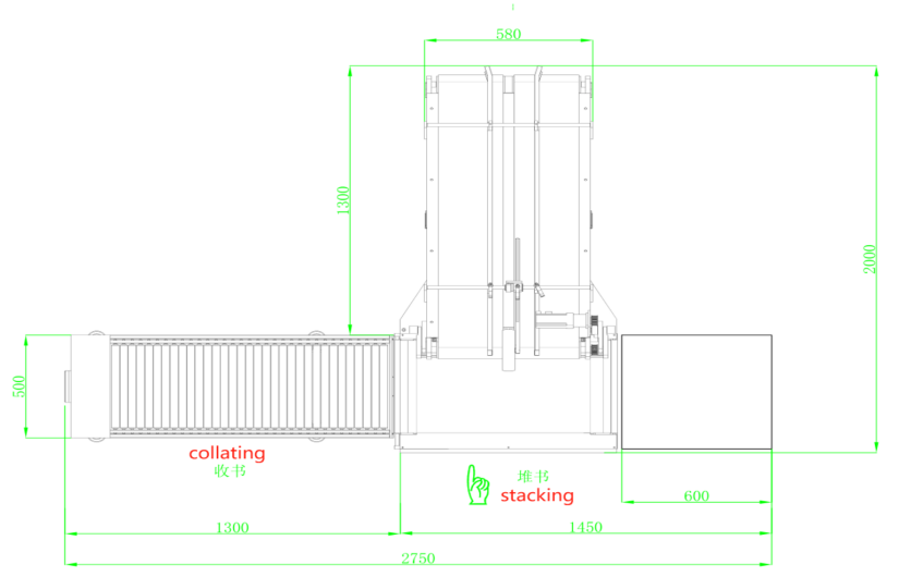 This machine is connected to the output of the automatic book sewing machine. Books with sewn bindings are transported via a conveyor belt into the machine’s storage hopper. The conveyor belt is equipped with a photoelectric switch for counting. When the number of books in the storage hopper reaches the set value programmed into the computer, the hopper’s air pump automatically pushes the stacked books out to the collection table, completing the stacking process and facilitating easy book collection.